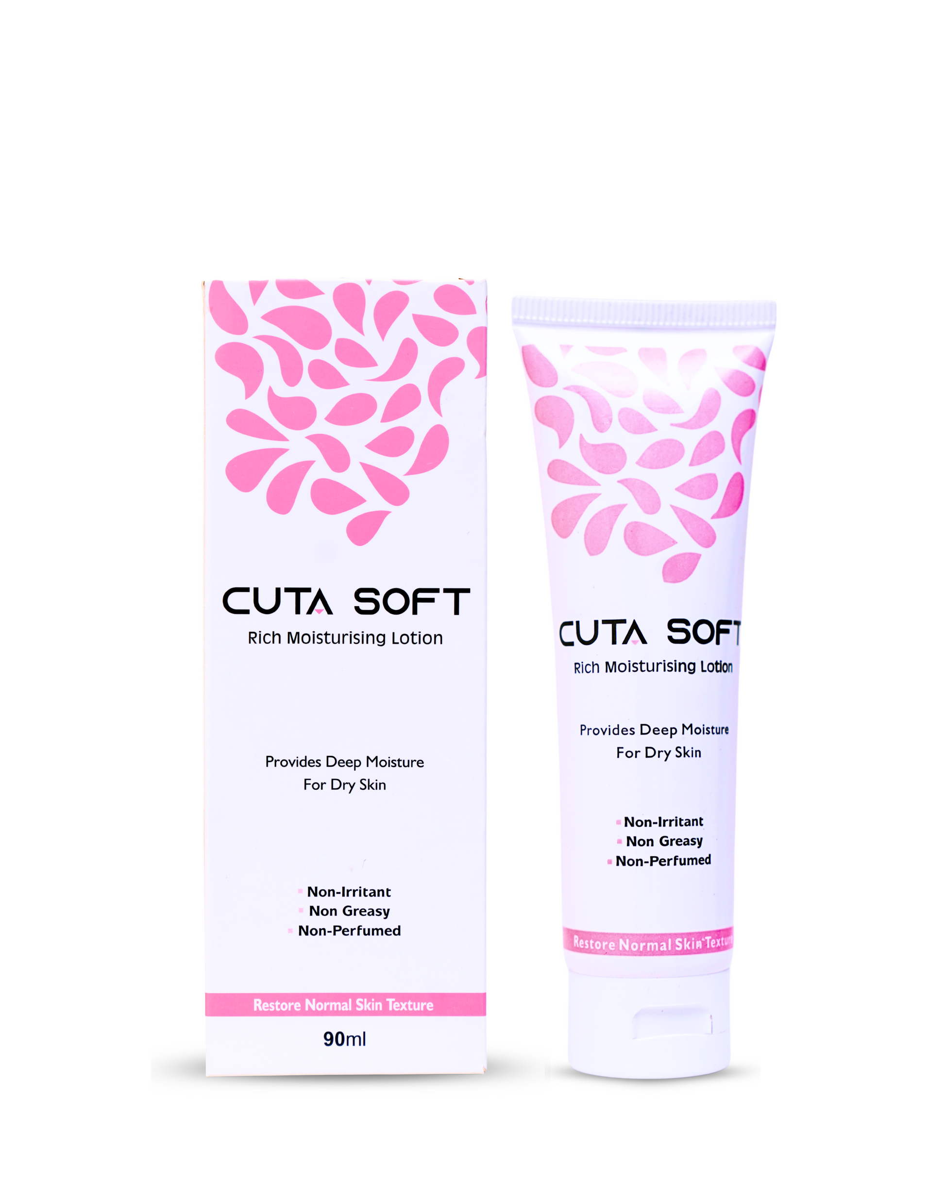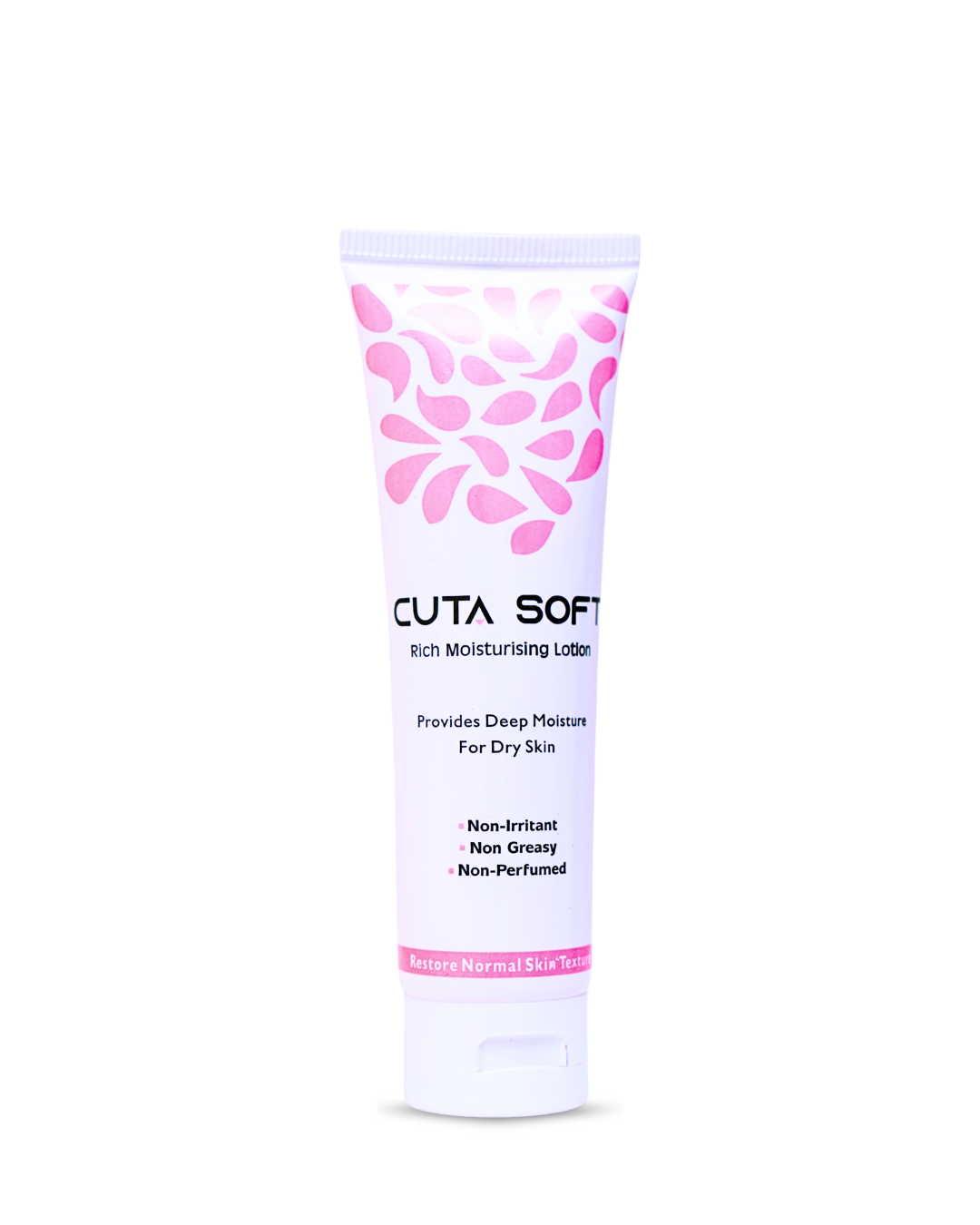 Cuta Soft Rich Moisturising Lotion is a fragrance-free, non-greasy formula specifically designed to combat dryness and restore a healthy, hydrated complexion.