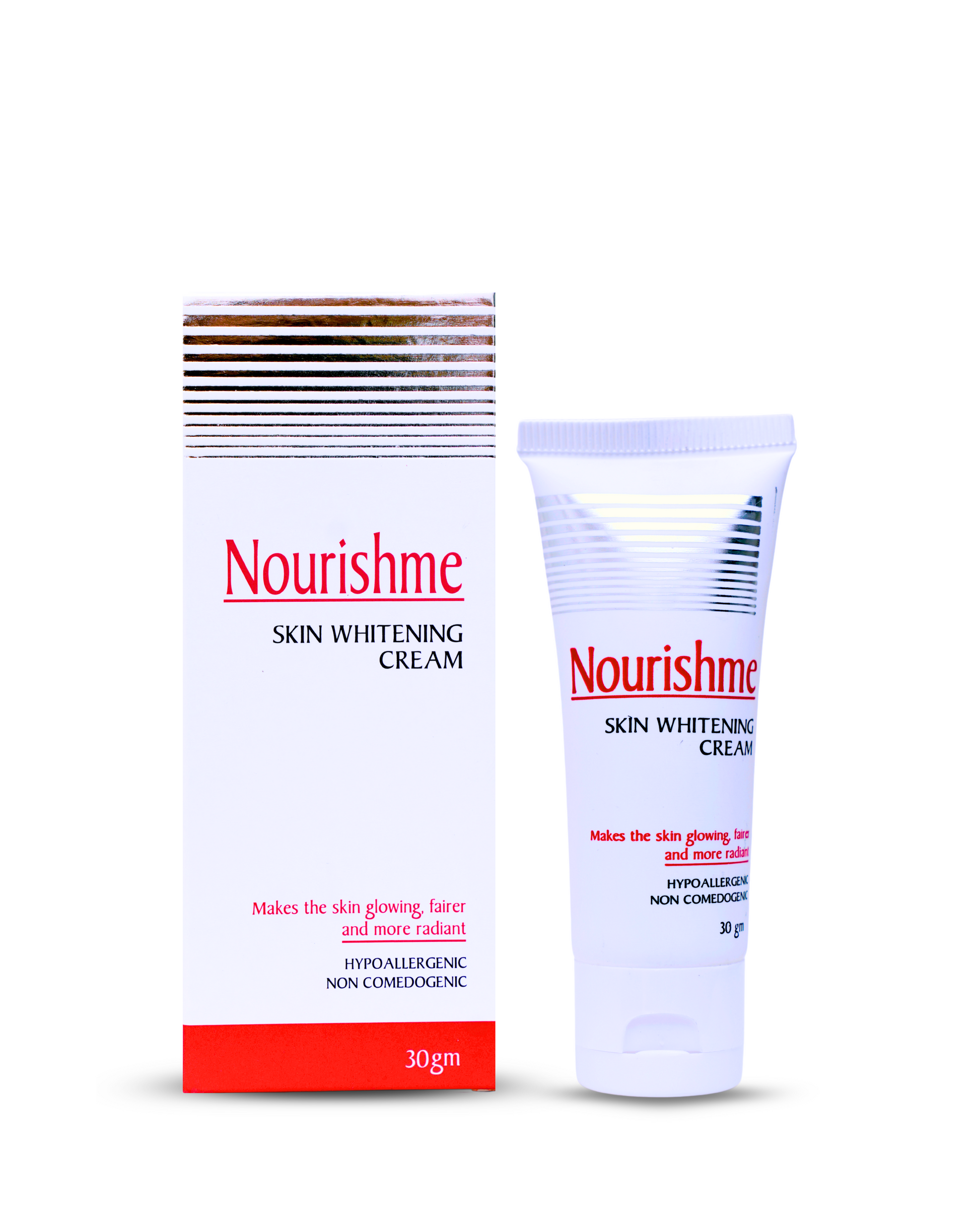 Nourishme Skin Whitening cream Unveil a brighter, fairer, and more radiant complexion with . This hypoallergenic and noncomedogenic formula has stood the test of time, effectively lightening freckles and banishing black spots. It works deep with in your skin to fade dark spots, while inhibiting melanin production for a flawless complexion